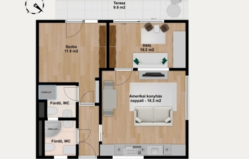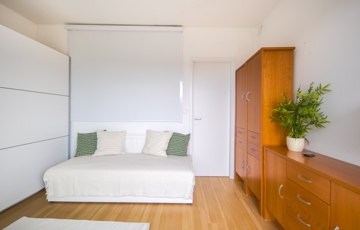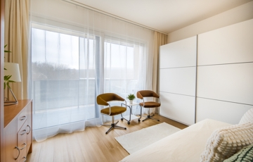 A szobából és a hálóból is közvetlenül ki lehet menni a teraszra.