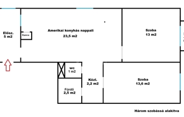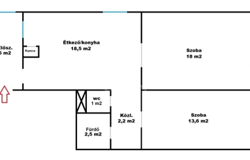 A lakás tulajdoni lap szerint 55 nm-es, 2 szobás. A tulajdonosok a társasháztól megvásároltak további 5 nm-t, mely előszobaként funkcionál.