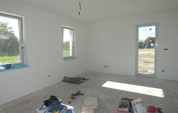 A kulcsra kész ár tartalmazza a redőnyöket, három rétegű nyílászárókat, riasztó előkészítést, kaputelefon és motoros kapu kiépítést. A gépjárművekkel az ingatlanhoz tartozó térkövezett beállón lehet biztonságosan parkolni.