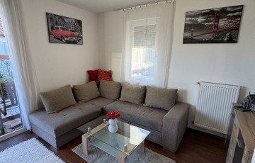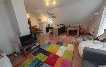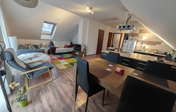 Tetőtér: amerikai konyhás nappali erkélykapcsolattal, 2 szoba, fürdő, külön WC.