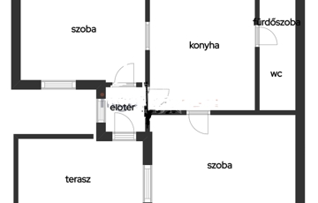 2 külön nyíló szoba, előszoba, konyha és fürdő+WC-ből áll