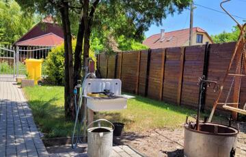 bográcsozási lehetőség, kertkapu a biztonságos, szomszéd házakkal körülvett „focirétre”.</p><p>A házat a tulajdonosai saját részre építették, szeretgették, kialakítása