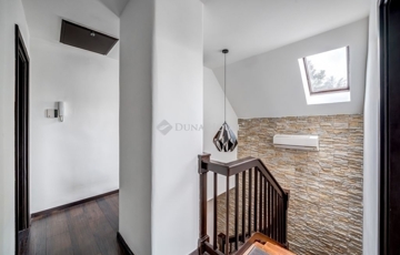 Átgondolt elosztás, élhető terek: a földszinten tágas előszoba fogad, beépített cipős- és akasztós szekrényekkel, bőséges tárolóhellyel. Innen nyílik a külön mosókonyha, háztartási helyiség és a vendég WC. A modern, teljesen gépesített konyha külön helyiségben kapott helyet. A világos, tágas étkező-nappali egy légtérben helyezkedik el, közvetlen kert- és teraszkapcsolattal, amely kellemes életteret biztosít a mindennapokban. Az emeleten három különnyíló, redőnnyel felszerelt hálószoba található, így az ingatlan ideális többgyermekes családok számára is. Két hálószobából erkély nyílik, ahonnan élvezhető a panorámás kilátás. Az egyik szobában 3 méteres beépített szekrény biztosít praktikus tárolást. Ezen a szinten külön gardróbhelyiség és egy kényelmes méretű fürdőszoba szolgálja a család komfortját.