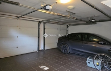 Parkolni a házkapcsolatos dupla garázsban lehet, de van további autónak térkövezett beálló is.