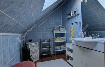 - tetőtér: közlekedőből kialakított stabil szerkezetű lépcsőn közelíthető meg a társalgó, fürdőszoba, két külön nyíló kényelmes méretű tetőtéri szoba melyek egyikéből utcafront felé kialakított erkély kapott teret