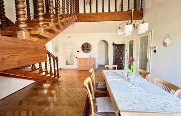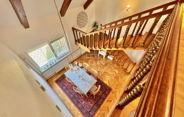 A Balaton északi partjának egyik legszebb városában, Balatonfüreden, kiváló közlekedés és ellátottság mellett, kertvárosi környezetben, 10 perc sétára a vitorlás kikötőtől, és a Tagore sétánytól, 586 m2-es összközműves telken, 1990-ben épült, 190 m2-es lakóterületű, 2 szintes, dupla komfortos, dupla nappalis + 3 hálószobás, a földszinten található nappaliból közvetlen 40 m2 -es teraszkapcsolattal rendelkező, kiváló elosztású, külön nyíló szobás, napos-világos, K-NY-i tájolású, alacsony fenntartású, kombinált gázcirkó és cserépkályha fűtésű, jó állapotú, 2018-ban új thermo ablakokra cserélt, klimatizált, riasztórendszerrel felszerelt családi ház, beépített, gépesített konyhával, nagyméretű tárolóval, garázzsal, úszómedencével, rendezett kerttel, rugalmas költözéssel eladó.