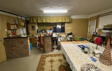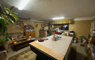 Földszint: Itt helyet kapott egy külön helyrajzi számmal rendelkező, 34 m²-es, jelenleg szabadidős szobaként használt, műhelyként nyilvántartott helyiség, amely igény esetén könnyen üzlethelyiséggé alakítható