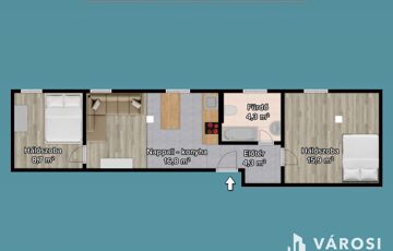 A tágas amerikai-konyhás nappali, ahol a családi és baráti összejövetelek is könnyedén megszervezhetők. A kádas fürdőszoba és a lakás két végében található 2 hálószoba tökéletes életteret biztosít egy kisebb család számára is.