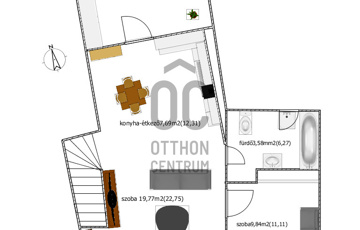 - A nappali a konyhával és az ebédlővel egy légtérben helyezkedik el