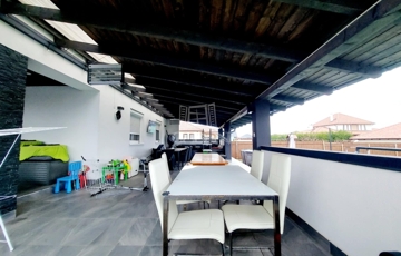 A ház egyedi hanhulatáról a 100nm-es fedett terasz(+ 60nm nem fedett) gondoskodik, ami remek kikapcsolódást bíztosít tavasztól késő őszig a család minden tagjának!