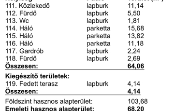 1. lakás: nettó 126 nm alapterület + 24 nm garázs + 19 nm terasz, 509 nm telekterület, 200.000.000 Ft