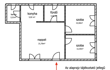 Ez a lakás az utcafronttól az utolsó a házban, így megfelelő priátszférát biztosít az ottlakóknak.