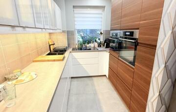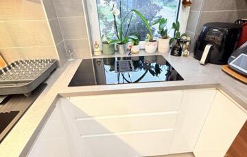 • Egyedi konyhabútor beépített elszívós főzőlappal, két sütővel (gőzölős + mikro kombi)