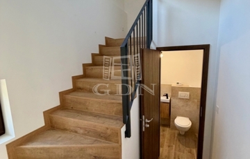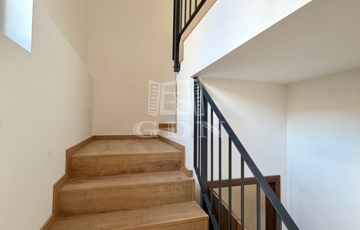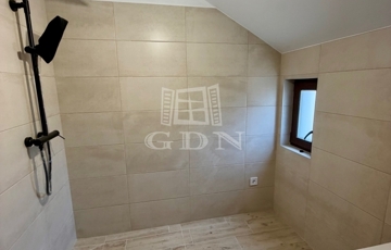 Az emeleti szinten két hálószoba, egy fürdőszoba és egy erkély található, már elektromos redőnyökkel felszerelve.