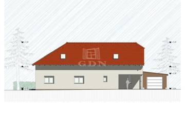 A ház egy 713 m²-es, rendezett, sík telken helyezkedik el, garázzsal és kb. 10 m²-es földes pincével.