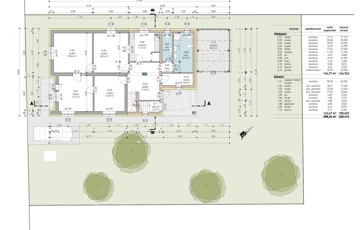 A két ingatlan úgy oszlik meg, hogy a földszinten van 144 nm hasznos lakótér és az emeleten pedig 101 nm.