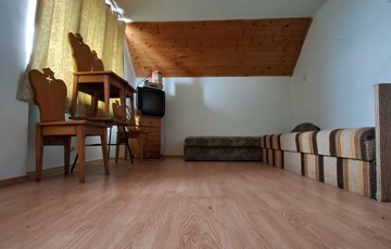 Alapterülete 20 m2, tetőterében egy 16 m2-es szoba van kialakítva, így lakóterülete 36 m2. A bejárat előtt egy 15 m2-es fedett, téliesíthető terasz található, a tetőtéri szobából erkélyre lehet kimenni.