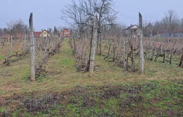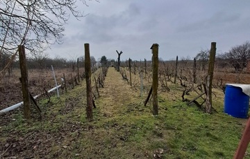A telken gyümölcsfák, szőlő és egy szerszámtároló található!