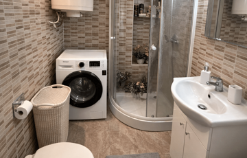 A nappaliban beépített konyhabútor található, amely tartalmazza a szagelszívót, elektromos tűzhelyet és hűtőt is.