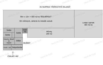 - 50×12 m-es tégla raktár (iroda, konyha, ipari áram, gázcsonk, felszerelt radiátorok)