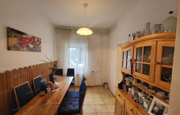 Győr–Ménfőcsanakon, frekventált, mégis nyugodt kertvárosi környezetben eladó egy kétlakásos társasház első emeleti, külön bejáratú lakása, amely valójában egy családi ház teljes felső szintjét jelenti, saját használatú kerttel és melléképületekkel.