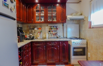 A kisebbik lakrész, földszintes 1 szobával + hálóhelyiséggel, fürdőszobával, konyhával nyerte el jelenlegi állapotát.