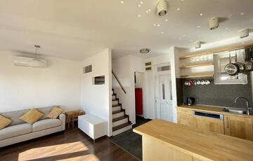 Eladó a VII. kerületben, a Jósika utcában, a Szenes Hanna park mellet egy igazán különleges hangulatú, panorámás kilátással rendelkező, nettó 60, bruttó pedig 80 nm-es, belső kétszintes (duplex) lakás egy 2007-ben épült, liftes társasház 5. emeletén.