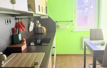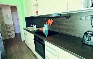 A konyhába igényes, beépített konyhabútor került Electrolux konyhai gépekkel, kivezetett szagelszívóval. A melegburkolatos helyiségekben vinyl burkolat, az egész lakásban új beltéri ajtók kerültek beépítésre.