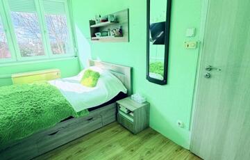 A nyílászárók műanyag ablakok, redőnnyel felszerelve. Az épület műszaki állapota jó: a társasház szigetelt, a lépcsőház rendezett, műanyag nyílászárós, a tető pedig 20 cm-es hőszigeteléssel rendelkezik. A lakáshoz külön tároló is tartozik.