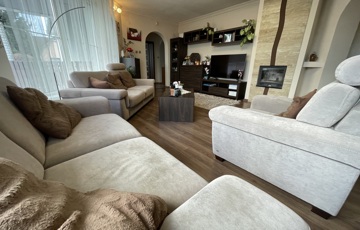 A 98 m²-es lakótérben tágas nappali, 2 külön nyíló szoba, konyha-étkező, spájz, és egy szuper gardrob található. A nappali hangulatáról kandalló gondoskodik. A ház egyedi gázfűtéssel, klímával, műanyag nyílászárókkal és riasztórendszerrel felszerelt. A tető tartós BRAMAC cserépfedést kapott, a tetőtér pedig igény szerint beépíthető.