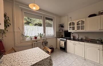 Az ingatlan praktikus elosztású, szobái külön nyílnak, a konyha pedig kifejezetten nagy és tágas, így étkezőként is jól használható, családok számára is kényelmes megoldást kínál. A nyílászárók műanyagok, a burkolatok jó állapotúak, a szobákban parketta található. A délkeleti fekvésnek köszönhetően a lakás világos, napfényes.