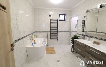 Egy igazán minőségi otthon ahol kényelmesen elfér több tagú család is, Modern dizájn minőségi anyaghasználat mint szaniterek mint burkolatok,ill. beépített gépek eszközök tekintetében.