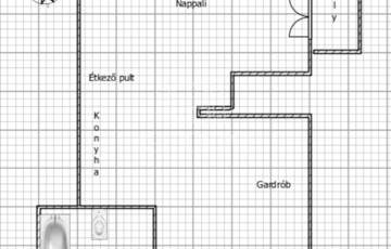 A lakás előszoba, fürdőszoba-WC, gardrób, konyha és nappali helyiségekből áll.