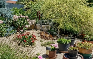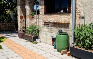 A rendezett, térkövezett udvar több autó számára biztosít parkolási lehetőséget. Melléképületek és kocsibeálló is kialakításra került, a ház előtt elhelyezkedő kertet pedig igényes évelő növények teszik igazán hangulatossá.