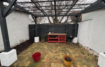A kertben, a garázs mögött egy privát sütögetésre alkalmas hely lett kialakítva.