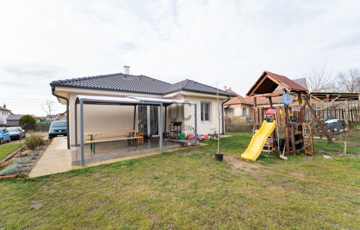 - A fedett előtér mellett 17 m2-es hátsó terasz kapcsolódik a nappalihoz