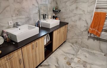 A nettó 120nm-es ingatlan, 50-es tégla falazattal (+10cm dryvit), 3 réteg üvegezésű melegperemes bevonatú műanyag nyílászárókkal, 25cm vastag ásványgyapottal szigetelt födémmel és antracit cserépfedéssel rendelkezik.