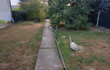 A telek 850nm, szépen gondozott, jelenleg cseresznyefa és babérmeggy díszíti.