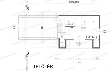 Kialakításra került benne előtér, nappali-konyha-étkező, kamra, 3 szoba, gardrób, két fürdőszoba, két wc, mosókonyha, hobbihelyiség, kazánház, tároló és 16nm garázs. Teraszai 15 és 17nm-esek.
