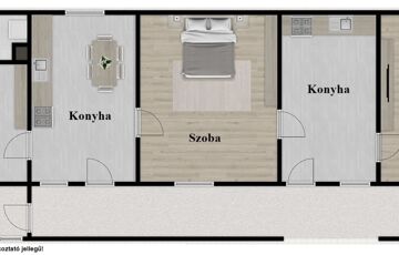 A 95nm-es verandás házban 3 szoba, konyha-étkező, zuhanyzós fürdőszoba és külön mellékhelyiség található. Ipari árammal ellátott, fűtés konvektorokkal, kályhával és központi fűtéssel megoldott, a nyári hűvösségről pedig klíma gondoskodik.