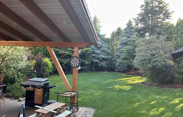- családi összejövetelekhez kiválóan alkalmas, 30nm-es fedett, kertkapcsolatos terasz,