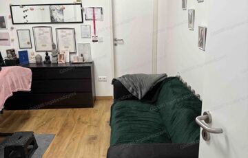 Az üzletben kialakításra került egy váró, két helyiség, kis teakonyha és külön mellékhelyiség.
