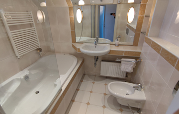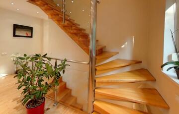 Emeleti szint: az emeletre kényelmes, elegáns, üvegkorlátos, tömörfa lépcső vezet, ahol három - nagyméretű, jól bútorozható, külön bejáratú - hálószoba, ablakos, kádas fürdőszoba és erkély található.