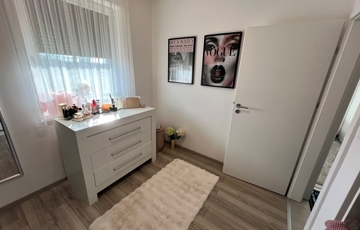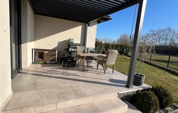 Győrzámoly csendes, szinte átmenőforgalom mentes, rendkívül kedvelt részén, újszerű családi házak környezetében, 851 m2-es összközműves telken, 504 m2-es telekhányadon, (saját, kizárólagos udvaron) lévő, amerikai konyha - étkező - nappali + 3 HÁLÓSZOBÁS, továbbá különálló fürdőszobával, különálló WC-vel, valamint háztartási helyiséggel/kamrával is felszerelt, 92 m2-es hasznos alapterületű, KLIMATIZÁLT, kiváló állapotú családi ház jellegű ikerház, 15,12 m2-es TERASSZAL, (alumínium lamellás pergolával) 2 db gépkocsi részére kialakított térkövezett beállóval eladó!
