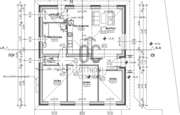 A közművek előkészítése folyamatban: az áram bevezetése már zajlik, a víz és a szennyvíz telken belül megtalálható, a gázcsonk az utcában rendelkezésre áll. A tulajdonos a fűtést klímás vagy hőszivattyús padlófűtéses rendszerrel tervezte, de a végső megoldást az új tulajdonos igényeire bízza — így valóban személyre szabható az otthon.