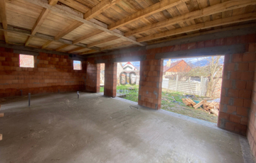 A 426 m²-es telken épülő, 99,80 m² alapterületű ingatlan amerikai konyhás nappalival és 4 szobával tervezett. A válaszfalak még nem kerültek kialakításra, így az új tulajdonos szabadon formálhatja a belső elrendezést. A tető modern antracit betoncserép fedéssel már elkészült.