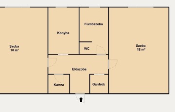 Az ingatlan kiváló elosztású: két külön nyíló, tágas, egyenként 18 m²-es szoba biztosít kényelmes életteret. A központi elhelyezkedésű előszobából nyílik a konyha, a fürdőszoba és a külön helyiségben található WC, ami praktikus megoldást jelent a mindennapokban. A lakáshoz kamra és gardrób is tartozik, így a tárolás könnyen megoldható.