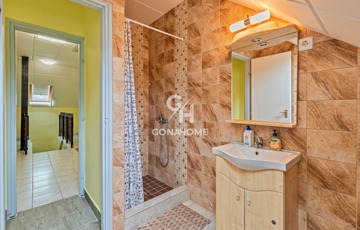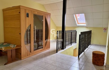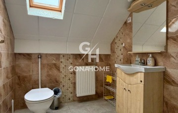 - Az ingatlan 2 szintből áll, az előszobából külön bejáraton keresztül megközelíthető a beépített tetőtér, valamint a földszinti lakrész is.