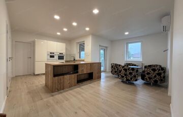 Budapesttől kb. 30 percre, Kiskunlacháza Duna-partján eladó egy 711 m²-es, parkosított telken épült, 268 m² alapterületű, még nem lakott, prémium kivitelezésű családi ház.