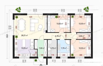 - HÁROM nagyméretű HÁLÓSZOBA (13,82m2, 12,53m2, 12,53m2)